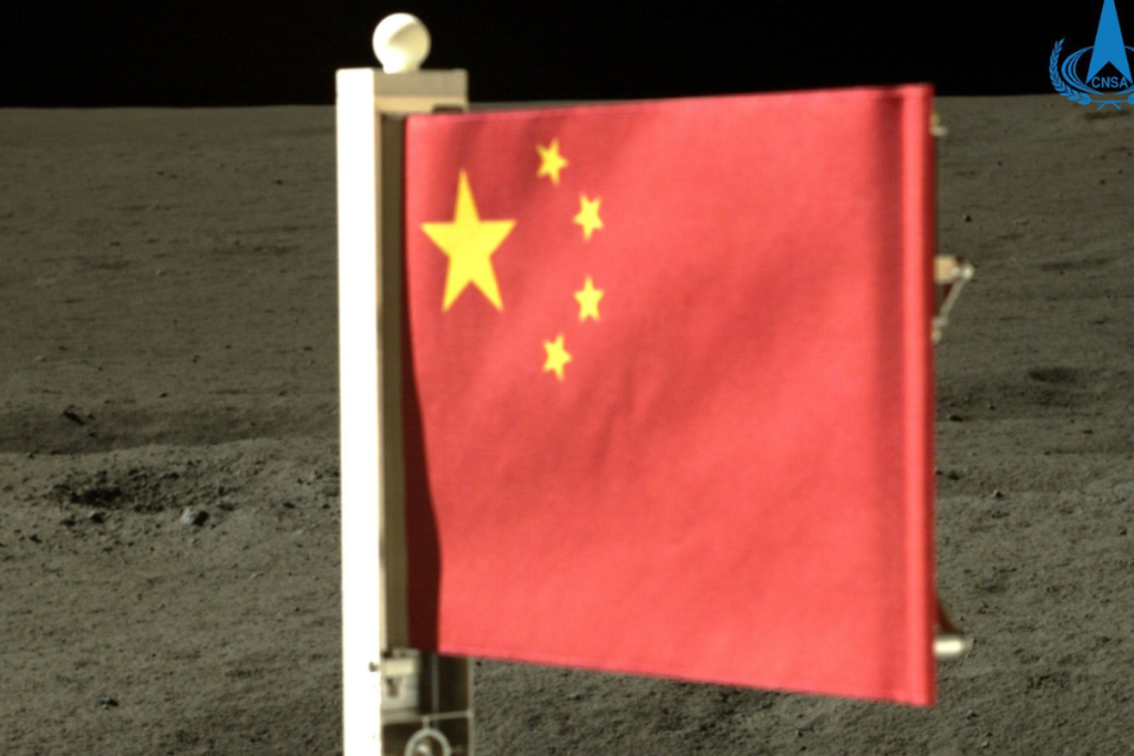 Tras recoger las muestras, Chang’e-6 extendió un brazo robótico para izar la bandera china, según una animación publicada por la CNSA.